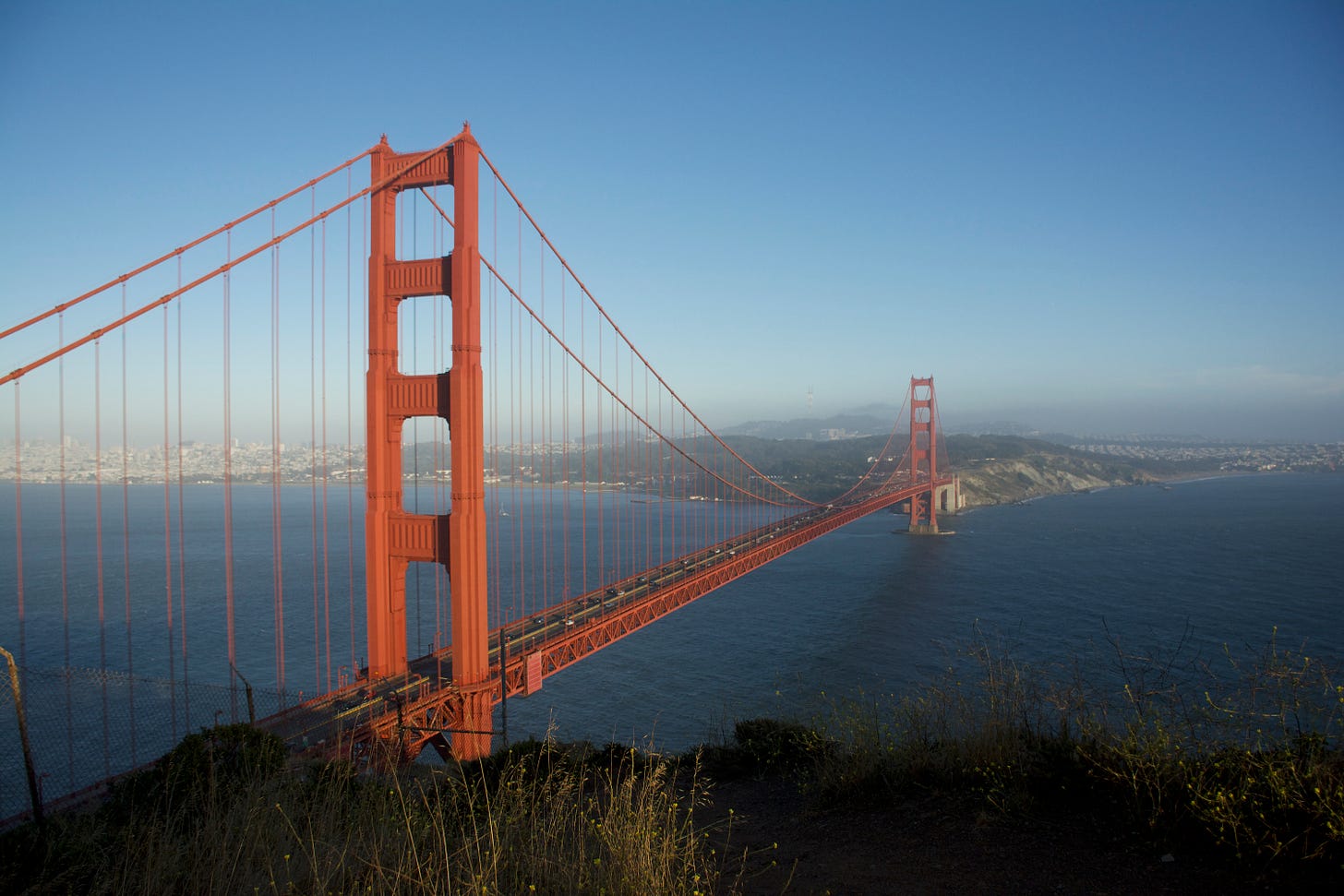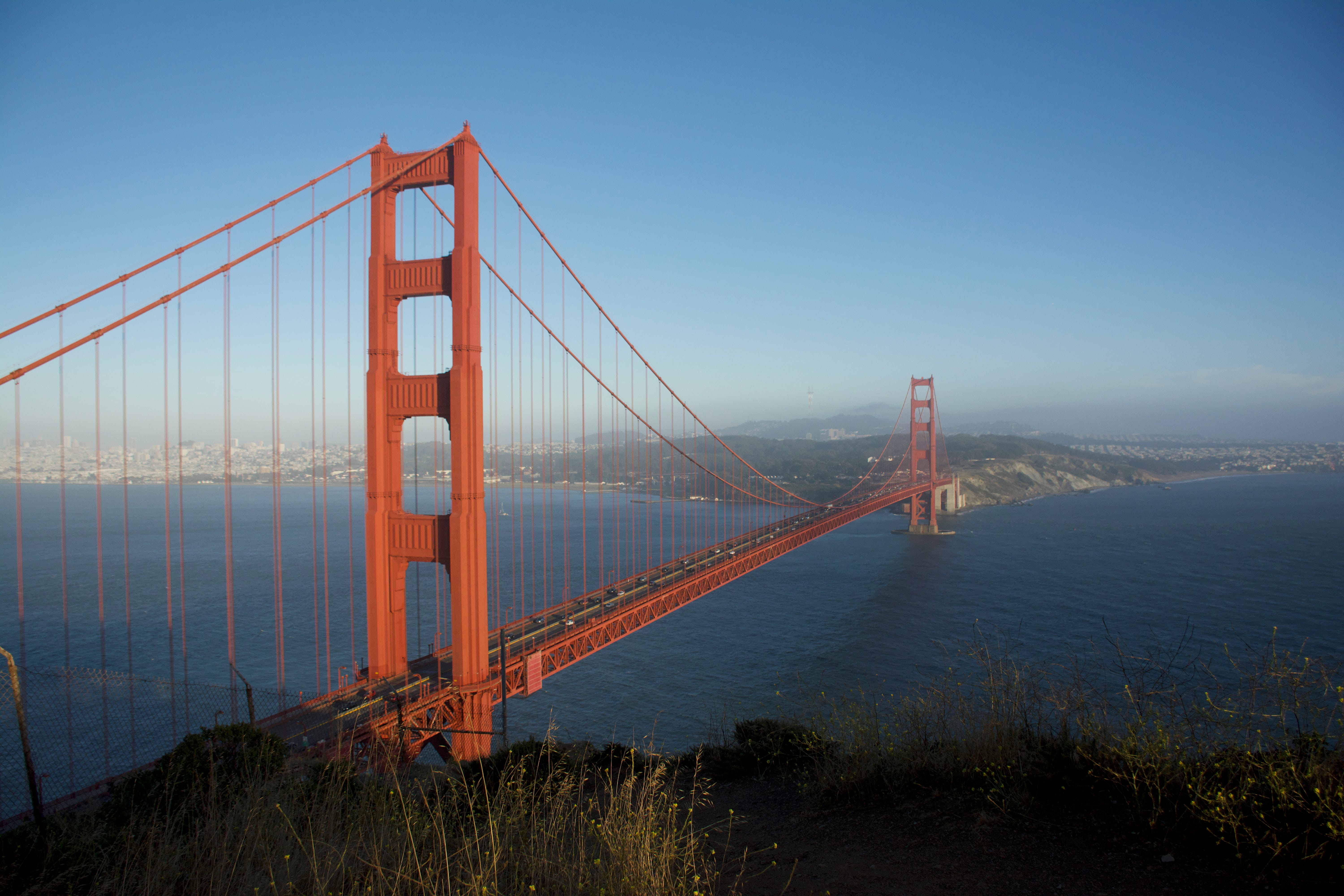 Η περίφημη πορτοκαλομπορντοροδοκόκινη γέφυρα που χαρακτηρίζει το Σαν Φρανσίσκο ονομάζεται, πολύ φυσιολογικά, Golden Gate Bridge. Ξεκίνησε να κατασκευάζεται το 1933 και από το 1937 που ολοκληρώθηκε συνδέει την πόλη με την κομητεία Marin στα βόρεια. Για πολλά χρόνια διατηρούσε τα σκήπτρα της μακρύτερης και της υψηλότερης κρεμαστής γέφυρας του κόσμου.