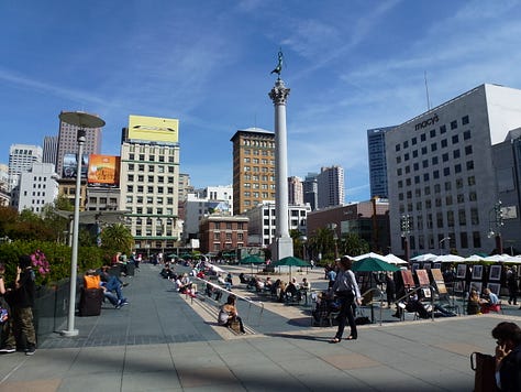 Κεντρικό σημείο είναι η Union Square στο εμπορικό κέντρο της πόλης, και στην κορυφή του Telegraph Hill δεσπόζει το Coit Tower.