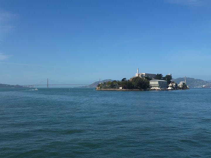 Πλησιάζοντας στο διάσημο νησάκι ακριβώς απέναντι από την πόλη, νομίζεις ότι θα εμφανιστεί ο Sean Connery από τη γνωστή κινηματογραφική επιτυχία, και με τη χαρακτηριστική προφορά του θα σε καλωσορίσει στον “Βράχο”, τη διαβόητη φυλακή υψίστης ασφαλείας Alcatraz.