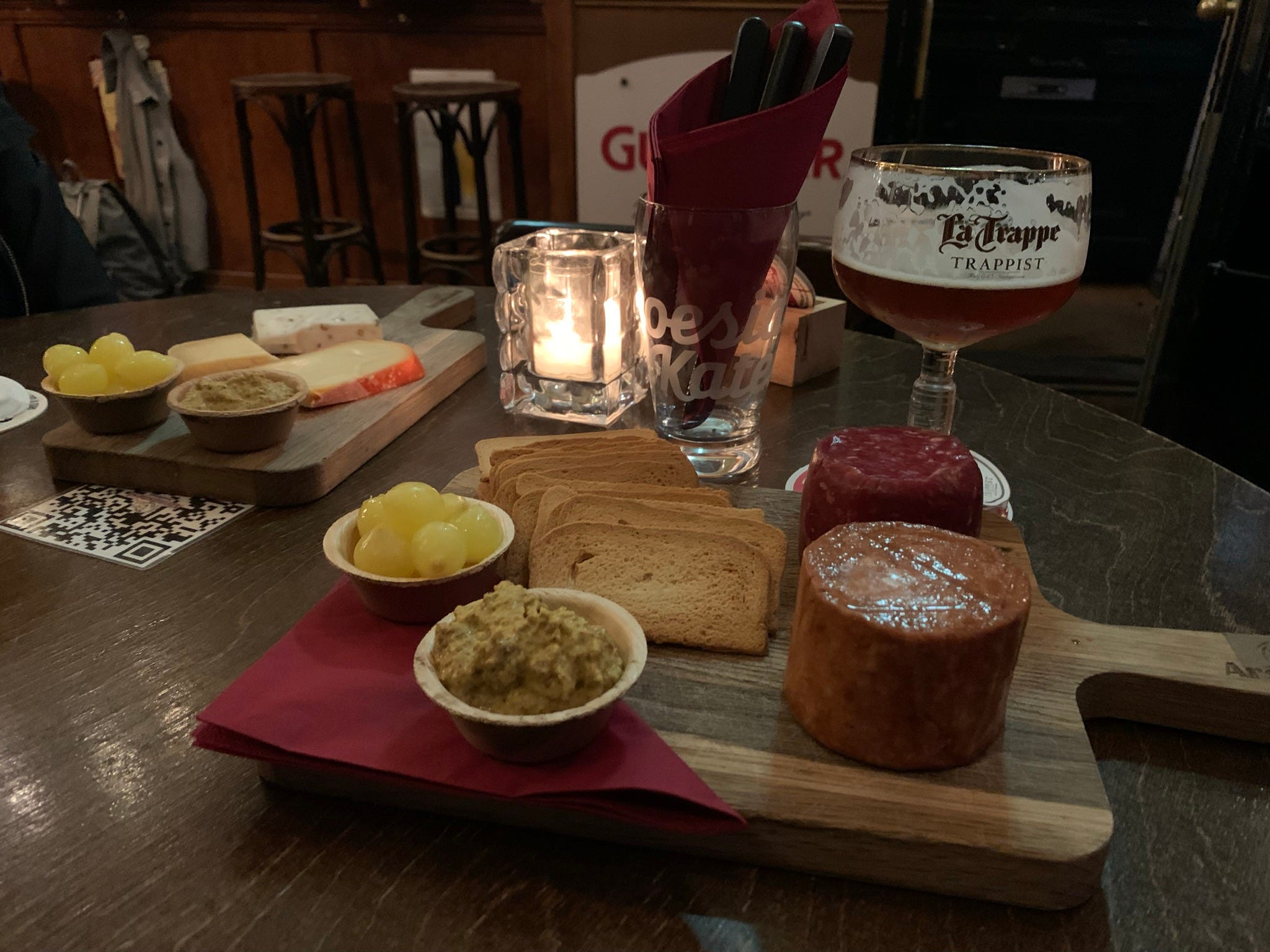 Το πρώτο βράδυ φρόντισα να εντοπίσω μία παραδοσιακή μπυραρία, όπου απόλαυσα La Trappe και Hoegaarden συνοδεία λίγων αλλά ταιριαστών μεζέδων: τυριά, αλλαντικά, ασκορδουλάκοι και φρυγανιές.