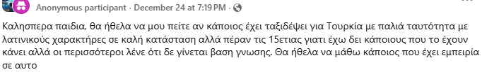 Στο τελευταίο γράμμα του 2024 είχα δώσει έμφαση στις νέες ταυτότητες και στα διαβατήρια, δηλαδή στην ακατανόητη (για εμένα τουλάχιστον) άρνηση πολύ μεγάλου μέρους των πολιτών να τα αποκτήσουν, με αποτέλεσμα να αναλώνονται σε ερωτήσεις σε διάφορες σελίδες των social media για το αν μπορούν να ταξιδέψουν στην τάδε χώρα και εάν κάποιος είχε ποτέ πρόβλημα: