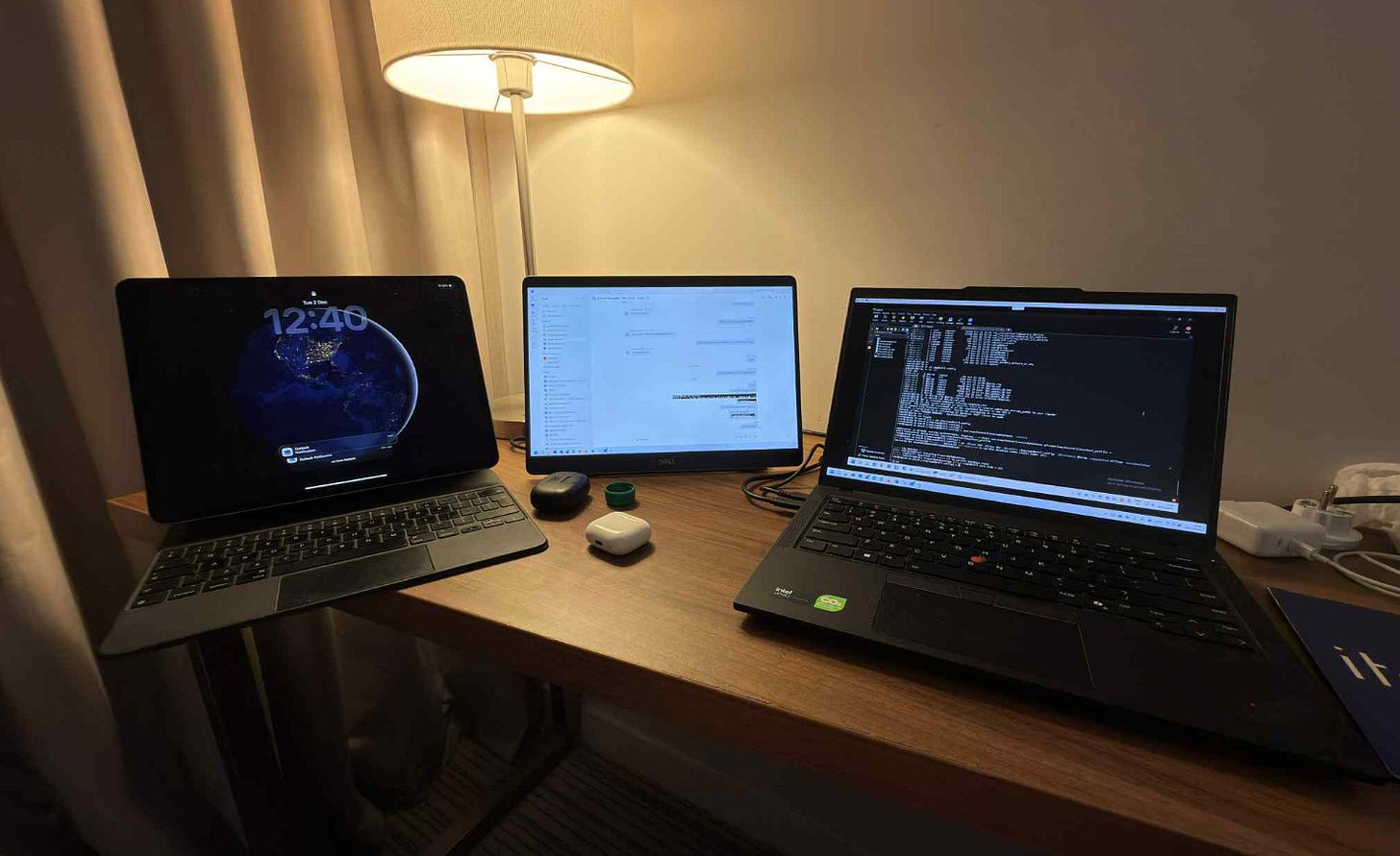 Σκεφτείτε επίσης την αγορά ενός φορητού monitor USB-C όπως πχ το DELL Pro Monitor P1425 Plus το οποίο είναι πανάλαφρο. Δείτε εδώ πως δούλευα από το ξενοδοχείο μου σε ένα από τα πρόσφατα ταξίδια μου: